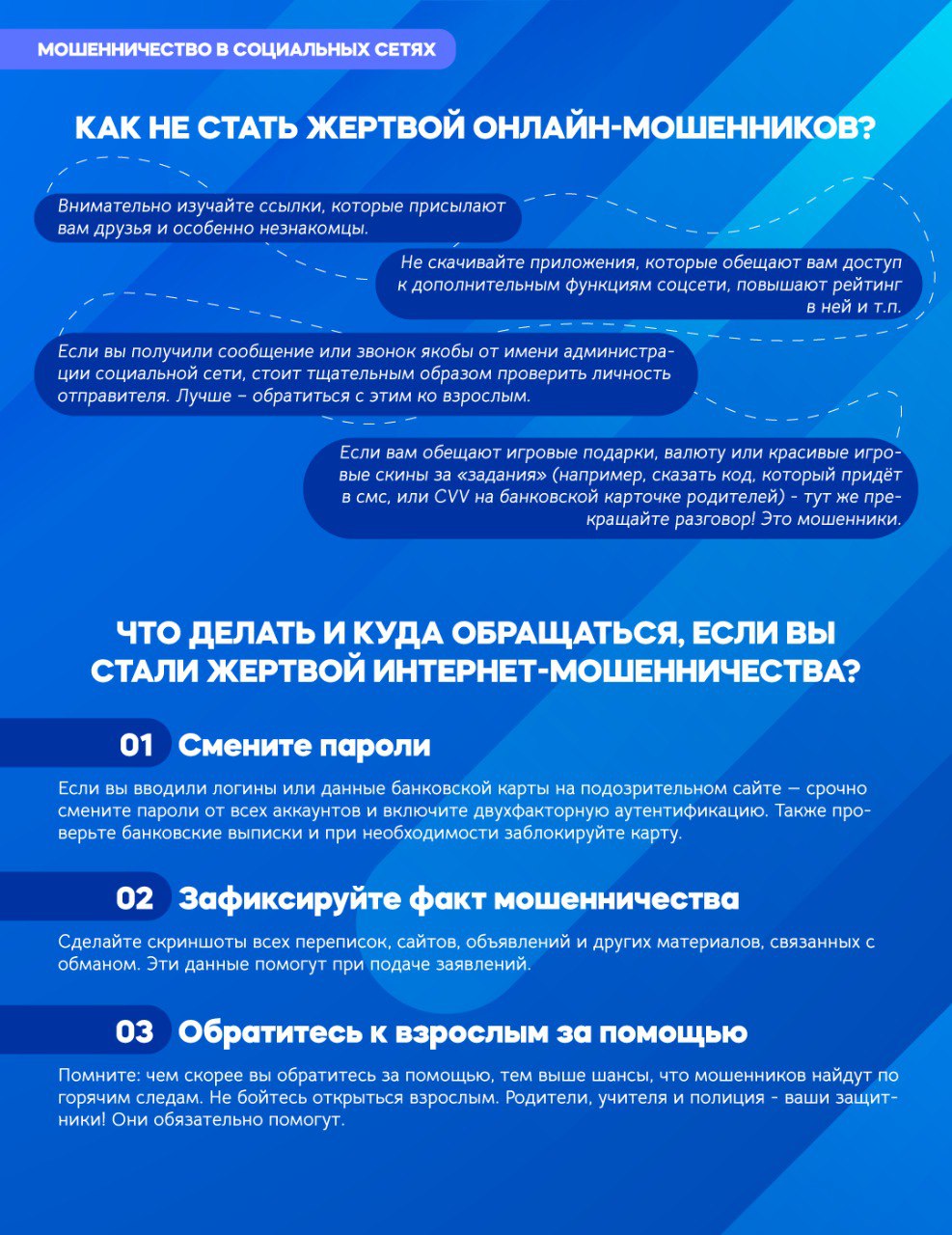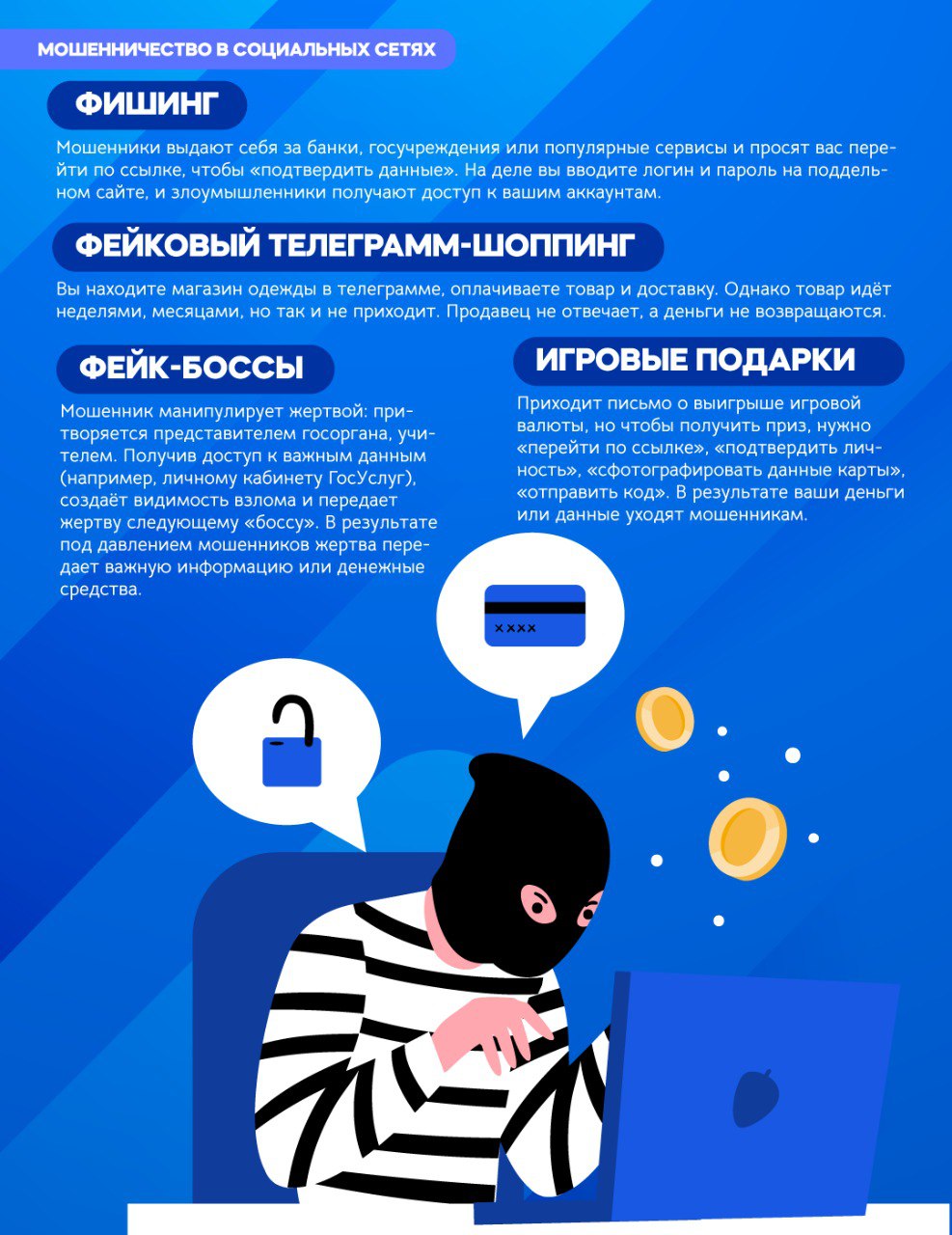 Согласно информации Главного управления внутренних дел РФ по Алтайскому краю на территории Алтайского края увеличилось количество преступлений, совершаемых уващимися образовательных организаций в сфере информационных технологий, участились случаи использования аккаунтов несовершеннолетних для манипуляции на интернет — платформах злоумышленниками и вовлечение детей в опасные ситуации.